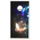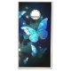 Fabulous, glowing, blue and yellow, night butterfly on dark background.