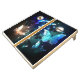 Natural Wood Cornhole Set, Royal Blue and Yellow bags