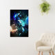 Fabulous, glowing, blue and yellow, night butterfly on dark background.