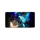 Fabulous, glowing, blue and yellow, night butterfly on dark background.