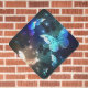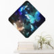 Fabulous, glowing, blue and yellow, night butterfly on dark background.