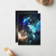 Fabulous, glowing, blue and yellow, night butterfly on dark background.