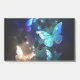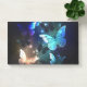 Fabulous, glowing, blue and yellow, night butterfly on dark background.