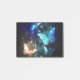 Fabulous, glowing, blue and yellow, night butterfly on dark background.