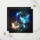Fabulous, glowing, blue and yellow, night butterfly on dark background.