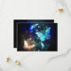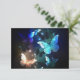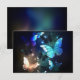 Fabulous, glowing, blue and yellow, night butterfly on dark background.
