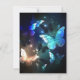 Fabulous, glowing, blue and yellow, night butterfly on dark background.