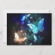 Fabulous, glowing, blue and yellow, night butterfly on dark background.
