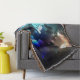 A quality printed throw has its advantages. This is a much finer weave throw than its loopier cousins, and though lighter, it is worth the investment for custom room accessorizing. The back is much prettier than the typical brown, and the fringe on the long sides very vivid, the selvage nicely done. Before photographing, I washed the throw in cold water, delicate, with a thicker woven throw the same size. On tumble dry low, this throw was dry in half the time as the other. This is a very practical quality if you use throws for furniture covers or to wrap up in frequently. The sleekness of the fabric makes it a great layer for accenting or protecting without the feeling of sitting on too much stuff. Perfect for napping or when you feel a light chill coming on. The color printing is beautiful and on this fabric, matched the design and color of my Photoshop image. This is an advantage for blending room fabrics and colors. The fringe on the short sides prints the colors from the design image and therefore varies from the side fringe. I streaked a white fractal line through the plaid pattern to give the illusion of weaving. This printed as crisp as an illusory thread, and put some white in the short side fringe, showing another advantage of print vs loomed- for artistic purposes, line lines, detail, and color integrity can be planned and preserved. My loomed throws have color limitations and more of a needlepoint texture. Print throws reproduce an exact image. The throw felt a little stiff straight out of the package, but this went away in the first delicate wash. Of course I searched the wash water for ink or bleeding and there was none.