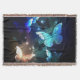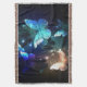 Fabulous, glowing, blue and yellow, night butterfly on dark background.