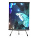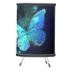 Fabulous, glowing, blue and yellow, night butterfly on dark background.