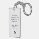 A beautiful bird memorial custom keychain. This simple bird design features the quote "Those we love don't go away. They fly beside us every day". Personalize with a message, name and date as well as a photo.