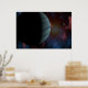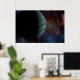 A CGI depicting a space probe's view of a fly by of planet Neptune.