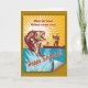 Birthday Day card featuring Fly Fisherman on boat catching largemouth bass retro style illustration