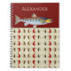 Notebook Fly Fishing Flies Rustic Salmon Watercolor design. This design is great for gifts for fishermen. Perfect for mountain Lake stream or ocean home or vacation rental properties. Vintage Catalog painting by Mary Orvis