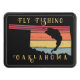 Fly fishing Oklahoma in retro style with large fishing after fly fishing lure.
