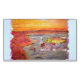 shows fly fisherman tying a fly on with the sun setting and rainbow trout chasing a fly from original art !