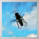 Close up macro shot of a small adolescent housefly perched on the window. Photography by Jerry Lambert.