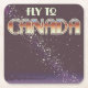 Fly To Canada - vintage style travel poster of a modern aircraft in flight to its Canadian destination.