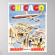 Fly to CHICAGO ILLINOIS USA Retro Airlines Travel Poster