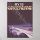 Fly To Greenland - vintage style travel poster of a modern aircraft in flight to its Greenland destination.