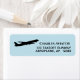 This return address label has a silhouette of a jet airplane flying. The background color is blue, but you can delete or change that if you want to customize it.