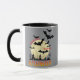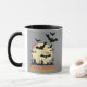 A coffee mug that says "Break from the Grind" with a Halloween image of bats flying up from a town in front of a glowing moon is a playful and spooky design, often worn by those looking for a break from their daily routine. It suggests a desire to escape the stresses of everyday life and embrace a more adventurous or thrilling lifestyle.