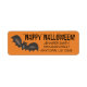 Address labels feature an original marker illustration of an orange background with a spooky black bat and HAPPY HALLOWEEN in a fun font. Great for Halloween mailings! Simply personalize with your name and address information.
