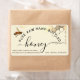 Gold gradient honeycomb and realistic flying bee on a pale ivory label.