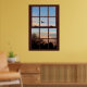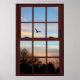 Enhance the decor of any room with this picturesque poster. The artwork creates the illusion of having a window on your wall. This realistic view of a bird flying at sunset gives the illusion of looking out of the window. The original artwork is 24" x 36" which is the average poster size and was created at high resolution (300 dpi) so it prints out beautifully.