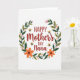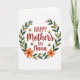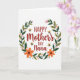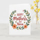 This card features a warm greeting centered inside a leafy wreath, creating a cozy, affectionate feel ❤️. The main text reads “Happy Mother’s Day Nana,” placed in the middle, with “Happy Mother’s Day” in a flowing letter style and “Nana” standing out in thicker lettering. The lettering is a deep reddish-brown, giving the message a rich contrast against the light background. Around the words, deep green and olive-toned leaves curl into a full circle, like a gentle embrace. Soft pink and bright orange five-petal flowers are tucked throughout the greenery, adding little bursts of garden color 🌼. Four small yellow-and-black striped flying insects with translucent wings hover around the wreath, as if circling close to the message. The background stays bright white so the foliage, flowers, and insects feel crisp and easy to notice. Near the top-right curve of the wreath, one yellow insect floats beside a cluster of orange blossoms and dark green leaves.