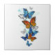 Flying Butterflies Morpho and Monarch Ceramic Tile