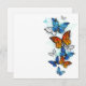 Flying, bright, blue butterfly morpho and orange monarch butterfly on a white background. Morpho. Monarch butterfly. Design with butterflies.