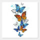 Flying, bright, blue butterfly morpho and orange monarch butterfly on a white background. Morpho. Monarch butterfly. Design with butterflies.