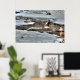 Flying Canada Geese and Winter Pond Wildlife Poster