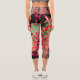 FLYING CRANES WITH SPRING FLOWERS Red Black Capri Leggings