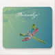 Add a touch of elegance to your home office or workspace with this exclusive mousepad design featuring a delicate floral background against a blue and yellow gradient with a colorful dragonfly embellishment. Customizable text allows you to alter fonts, change text colors and sizes as you wish. Personalize for yourself or makes a great gift.