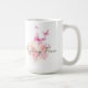 Flying Free mugs symbolize a woman's journey up and out of emotional abuse. The larger butterfly on the bottom is fuzzy and undefined, much like a woman who is hidden under the weight of abuse. But as she breaks free, her features begin to unfold in beautiful definition and strength, and she rises to her rightful place in God's creation.
