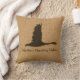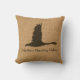 Goose in Flight on a fawn brown textured pillow. One side says Martin's Hunting Cabin. Click to change the name or the words. Reverse side has more flying geese on a caramel brown or peanut colored textured background. Rustic Woodsy cabin decor.