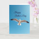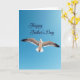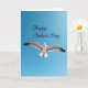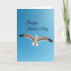 This design shows a wide blue sky with a gentle gradient that shifts from lighter near the bottom to deeper overhead, setting a calm, open-air scene. Across the lower half, a large white bird glides mid-flight with wings stretched wide in a balanced, almost mirror-like shape. Soft gray feather layers lead to darker charcoal tips, and the bird’s steady gaze has a small touch of yellow and black that adds focus and energy. Near the top, a short Father’s Day message sits centered in deep blue lettering, standing out clearly against the sky. The bright daylight gives the whole image a fresh, airy look, like a quiet drive with Dad 🚗. Tiny details—like the fanned tail and slightly tucked feet—add realism, while the bird’s smooth, confident motion feels like a gentle nod of closeness between parent and child 👨. The bird’s wingspan fills most of the lower area, with the text hovering above it in the open space.