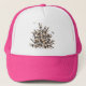 Pink and white trucker hat with colored graphic of repeating pile of cessna 172