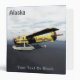 A de Havilland Canada DH3-C Otter, sporting the logo of mythical Flying Moose Aviation of Talkeetna, in flight somewhere over Alaska on an overcast day. Also depicted is the leather patch worn by the company's pilots. It features a winged moose superimposed on a circle with text reading "FLYING MOOSE AVIATION," "TALKEETNA, AK" and "ESTD 1957." Customizable text reading, "Alaska" also appears. There is an additional place for you to customize by adding your own additional text on the front, and another on the spine.