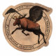 A leather patch bearing the logo of mythical Flying Moose Aviation in Talkeetna, Alaska as worn by the company's bush pilots. Features a winged moose superimposed on a circle with text reading "FLYING MOOSE AVIATION," "TALKEETNA, AK" and "ESTD 1957."
