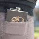 A leather patch bearing the logo of mythical Flying Moose Aviation in Talkeetna, Alaska as worn by the company's bush pilots. Features a winged moose superimposed on a circle with text reading "FLYING MOOSE AVIATION," "TALKEETNA, AK" and "ESTD 1957." Add your own additional text. Flightseeing, glacier landings, cargo, hunting and fishing charters. We fly, tell us where you want to go.