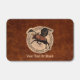 A leather patch bearing the logo of mythical Flying Moose Aviation in Talkeetna, Alaska as worn by the company's bush pilots. Features a winged moose superimposed on a circle with text reading "FLYING MOOSE AVIATION," "TALKEETNA, AK" and "ESTD 1957." Add your own additional text. A map of Alaska with text reading, "I Love (Heart) Alaska" appears on the reverse side. Everything is superimposed on a brown leather background image. Flightseeing, glacier landings, cargo, hunting and fishing charters. We fly, tell us where you want to go.