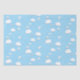 This fun gift wrapping tissue paper features various illustrated folded white paper airplanes and their flight trails with puffy clouds on a sky blue background - background is shown in blue but can be customized to any color that contrasts with the white graphics in the design - by katz_d_zynes