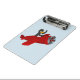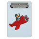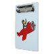 Clipboard with design with an illustration of a penguin flying a red plane; illustrated by Radka Kavalcova / MaxiHarmony