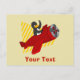 Personalized Postcard with design with an illustration of a penguin flying a red plane; illustrated by Radka Kavalcova / MaxiHarmony