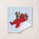 Towel with design with an illustration of a penguin flying a red plane; illustrated by Radka Kavalcova / MaxiHarmony