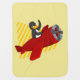Baby Blanket with design with an illustration of a penguin flying a red plane; illustrated by Radka Kavalcova / MaxiHarmony; great gift for a baby shower or for a newborn baby